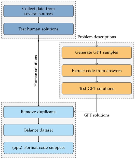 Flowchart of the data collection and preprocessing procedures. The boxes ‘Test …solutions’ indicate that the test cases are applied to the solutions and unsuccessful solutions are discarded.