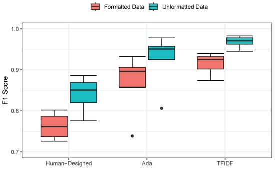 Final results. Shown are the mean standard deviation from ten independent runs on unformatted data; each run corresponds to a different seed, i.e., different distribution of training and test samples. Boldface: column maximum of in the ‘Human-designed (white-box)’ part and for each individual embedding model in the ‘Embedding (black-box)’ part.