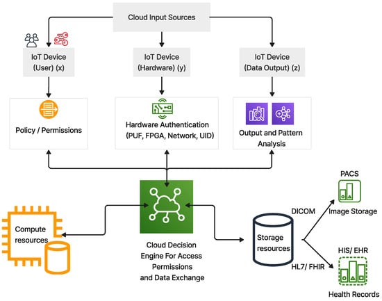 Representative image of the proposed access control functional diagram within the healthcare cloud–AI ecosystem.