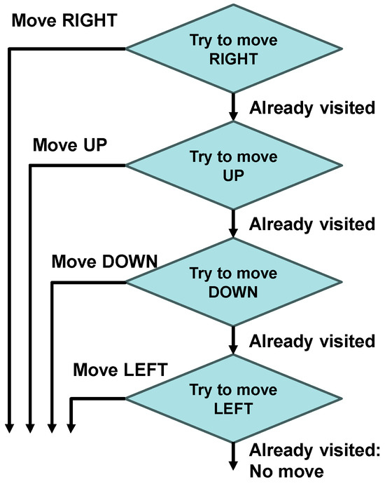 Flowchart for exhaustive search: drone movement decision. Priority of movements.