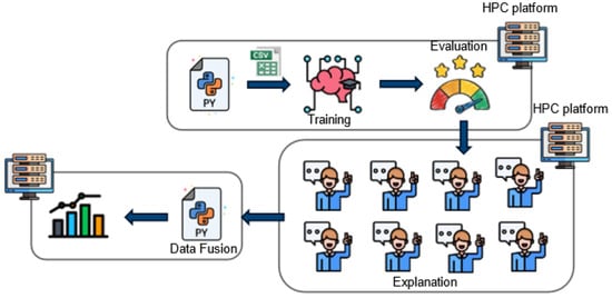 Training and explaining models are time-consuming tasks. SIBILA can perform both tasks on various models while testing various configurations of each. To speed up the process and deliver results in a short time, SIBILA makes use of HPC. Training is accelerated by graphics processing units (GPUs) and parallel computing. The ANN model is implemented with the Tensorflow framework, which automatically detects the available GPUs on the host machine and parallelizes the training. On the other hand, some models, such as RF and XGB, can perform multi-threaded training. The number of threads is configured by the hyperparameter “n_jobs”. If its value is set to −1, as many jobs as possible will be created. Model interpretability is another bottleneck in terms of speed. Many interpretability approaches perturb the trained model or the dataset to assess the impact of changes in model accuracy. This process is often computationally expensive, especially when dealing with large datasets or complex models. Since SIBILA explains models with nine different approaches, the process can take longer than training. This problem is overcome by using HPC clusters. SIBILA launches each interpretability algorithm in a separate job and waits until they are all finished before delivering the results. GPU computing is not essential for this task because the implemented algorithms do not support parallelization at the GPU level.