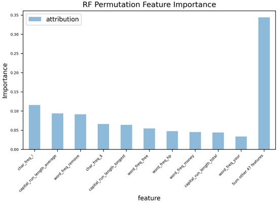 Average attribution plots created by SIBILA. Random-forest-based permutation importance obtained for the ANN model after training the spam dataset.