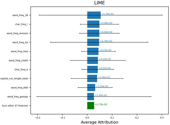 Average attribution plots created by SIBILA. LIME attributions obtained for the ANN model after training the spam dataset.