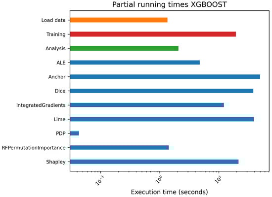 Execution times of the XGB model after training and interpreting the wine dataset.