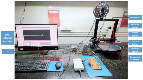 Most of the low-cost FDM 3D printers lack functionality for process monitoring during the printing phase. In such cases, real-time data gathering and monitoring are made possible via an external data collection system and multiple sensors. Even the most sophisticated FDM machines cannot distinguish between regular and abnormal (faulty) data for analytics as they can only monitor data. The main causes of faults may also be found with the use of accurate data analytics. Thermocouple and fibre Bragg grating (FBG) sensors were used by Kousiatza et al. to evaluate real-time field parameters and their impact on multilayer deposition to identify anomalies [13]. In the AM process, the data-driven, predictive method is used to improve the final product’s surface quality [14]. Multiple sensors, such as an accelerometer, thermocouples, and infrared temperature sensors, were used to gather real-time data such as temperature and vibrations [15]. Using sensor data, physical system process characteristics may be tracked in cyberspace throughout each communication network clock cycle. The many deployed sensor components on the physical system are capable of measuring a wide range of process parameters, including temperature, humidity, magnetic, vibration, and current. Using real-time sensor data to predict the behavior of the physical system properly, the anomaly may recognize and represent a physical system in the actual world [16]. Proper defect identification is a crucial component in producing high-quality items using AM. The issues may be identified by utilizing data-driven techniques [17].