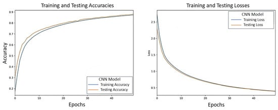 In the DL category, the CNN model is used for the classification of variable jerk conditions during the 3D-printing process. The data are up-sampled before passing to the CNN model. Figure 12 represents the learning curves for the classification models using the Jerk method. Training and testing accuracy will be high with increasing the number of epochs and loss will be continuously decreasing.
