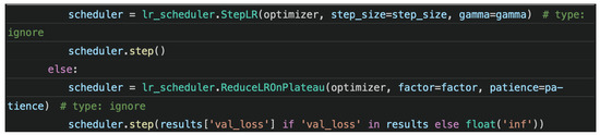 “Main.py” defines the training parameters as global variables—whereby they are named according to the functions in “function.py”—and performs the training process. Figure 4 describes code found in “function.py”.
