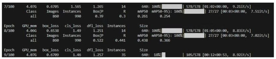During training, the objective is to minimize the loss function. A lower loss value indicates that the model’s predictions are closer to the actual values, which signifies better performance. Upon completing the training, two output files with the “.pt” extension will be generated: “best.pt” and “last.pt”. A “.pt” file is a PyTorch file that stores tensor information, typically containing the model’s architecture, parameters and any additional information required to recreate the model’s state [20]. Figure 5 shows the terminal output in Visual Studio Code during the training process.