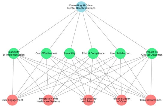 | AI-Driven Mental Health Solutions | Feasibility of Implementation (C1) | Cost-Effectiveness (C2) | Scalability (C3) | Ethical Compliance (C4) | User Satisfaction (C5) | Impact on Clinical Outcomes (C6) | |