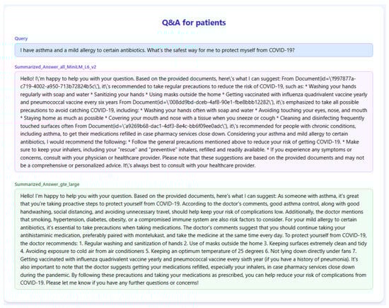 - all-MiniLM-L6-v2: A lightweight and high-speed model that produces 384-dimensional embeddings. It is optimized for fast inference and performs well on tasks such as semantic search, clustering, and sentence similarity. Its compact size and efficiency make it particularly advantageous for real-time clinical applications and shorter user queries.