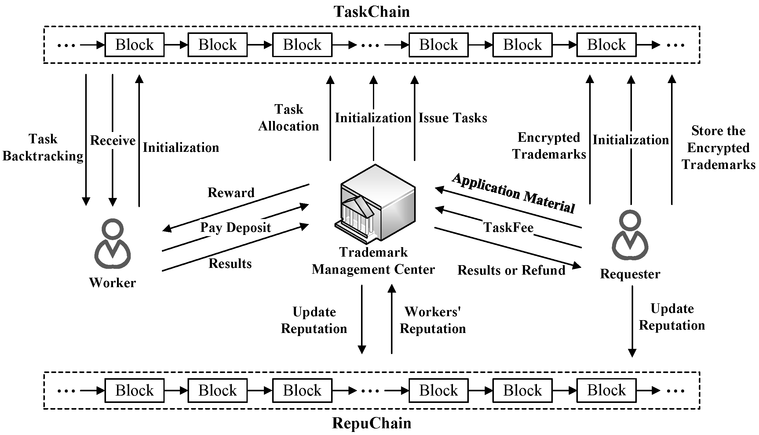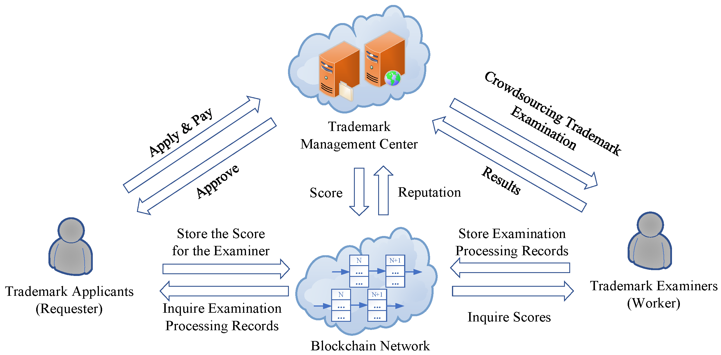 - We propose a Blockchain-based Crowdsourcing Interactive Trust Evaluation (Block-CITE) scheme, which operates in a decentralized way. Unlike previous works, Block-CITE is able to guarantee security by allowing users to take part in the blockchain-based crowdsourcing service without revealing their true identities and storing the hash value of trademark materials and examination results to the blockchain. As such, the ownership of anonymous users for their trademark materials can be guaranteed.