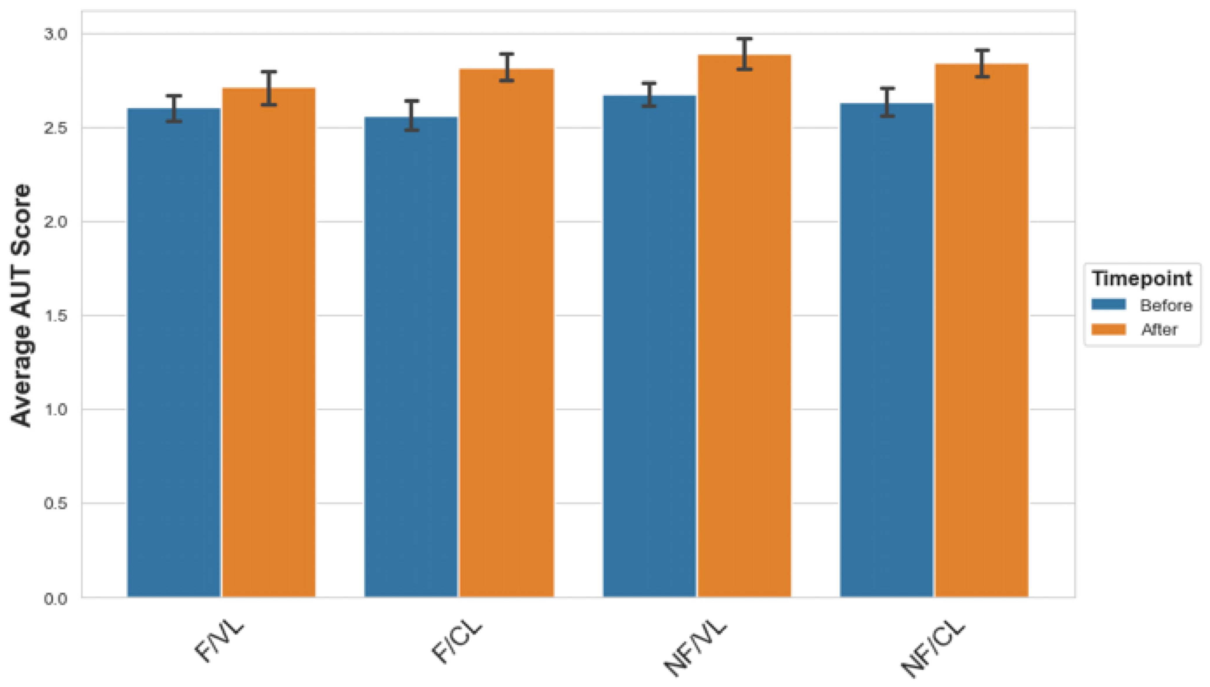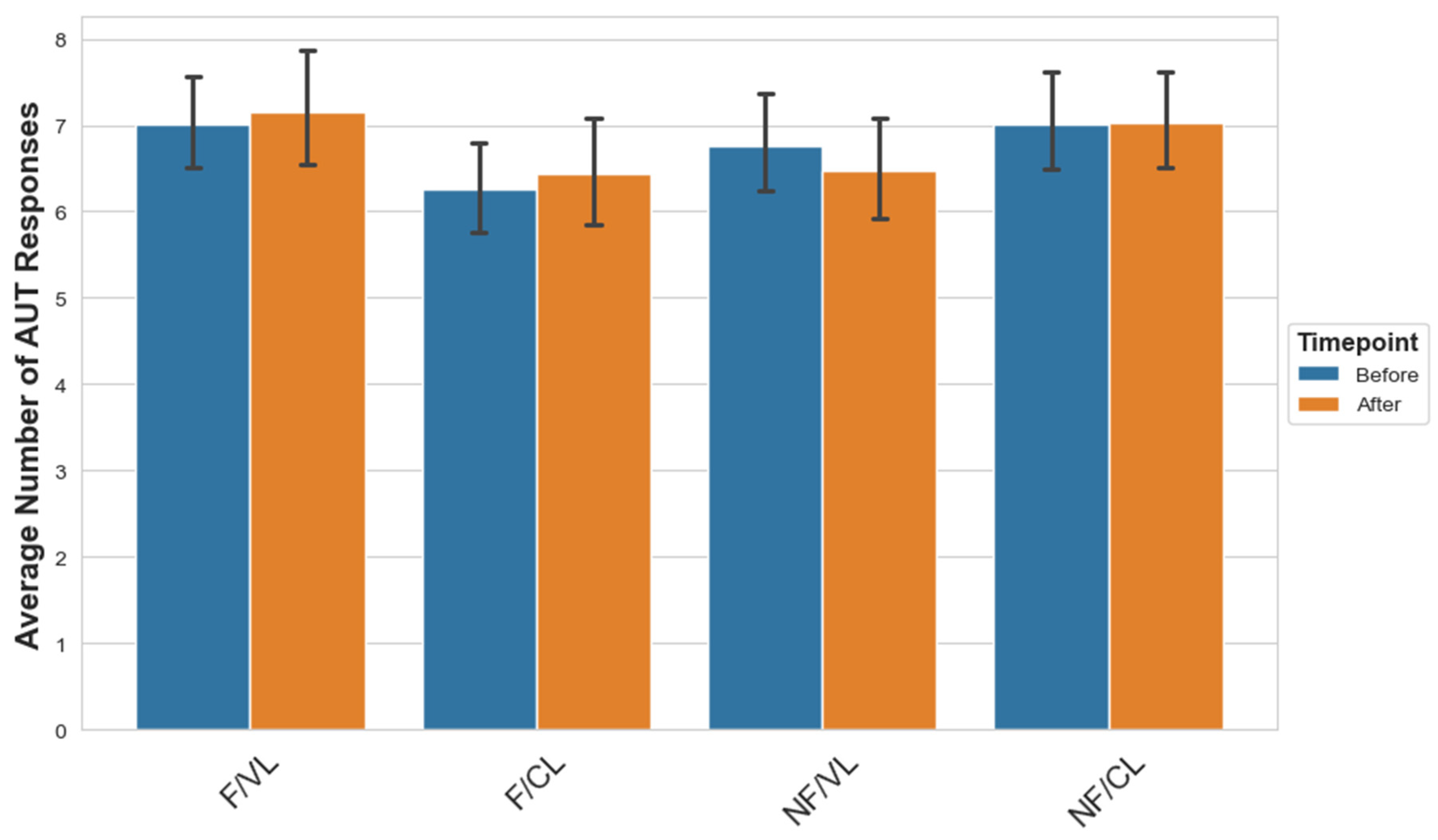 3.2.1. Creativity Improvements Across Conditions