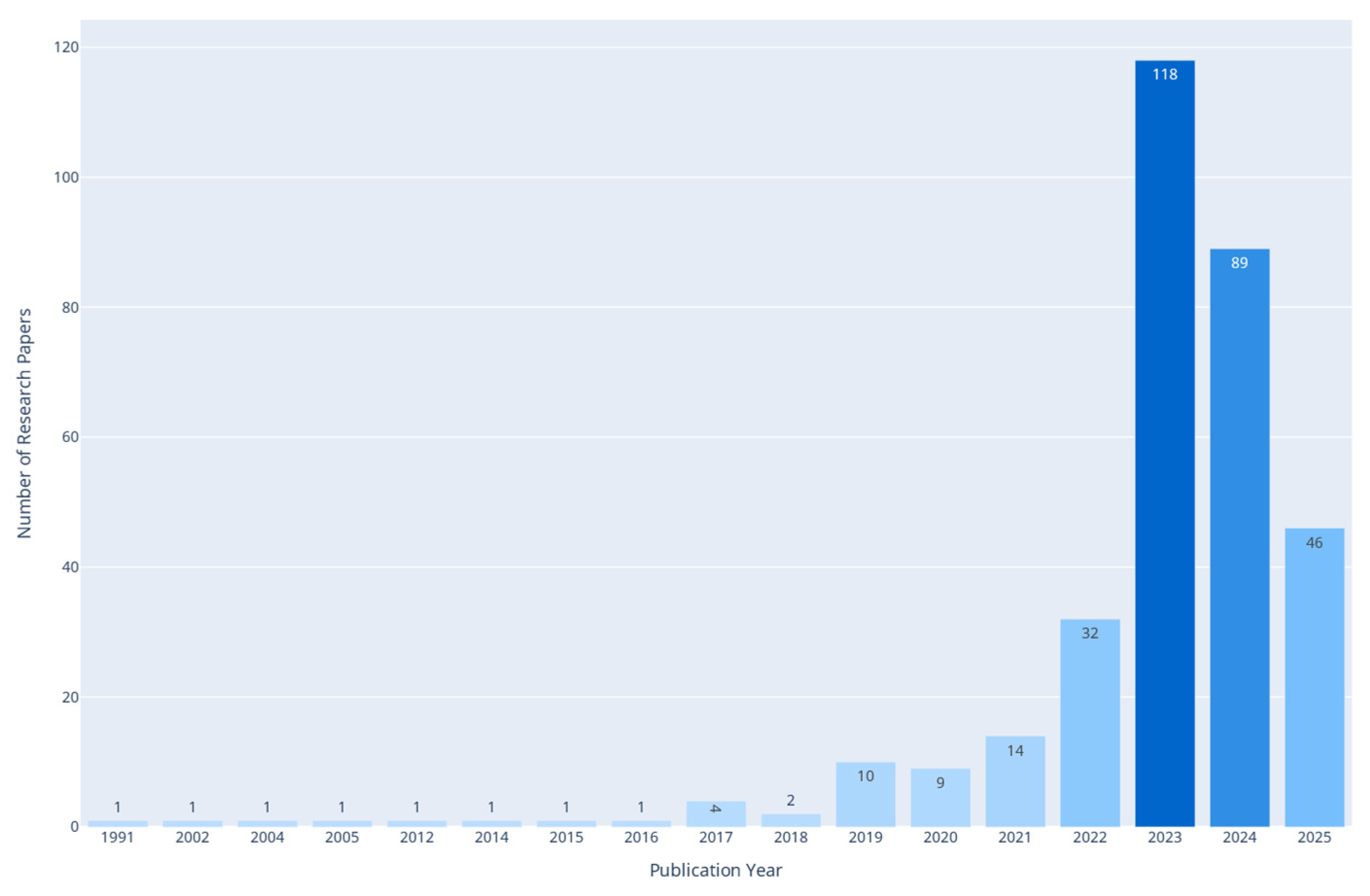 - Thematic clustering, where we consolidated those tags into six broad categories presented analytically in Section 4.2. This enabled us to generate informative visualizations that reflect the prevalence and trends among different mitigation techniques.