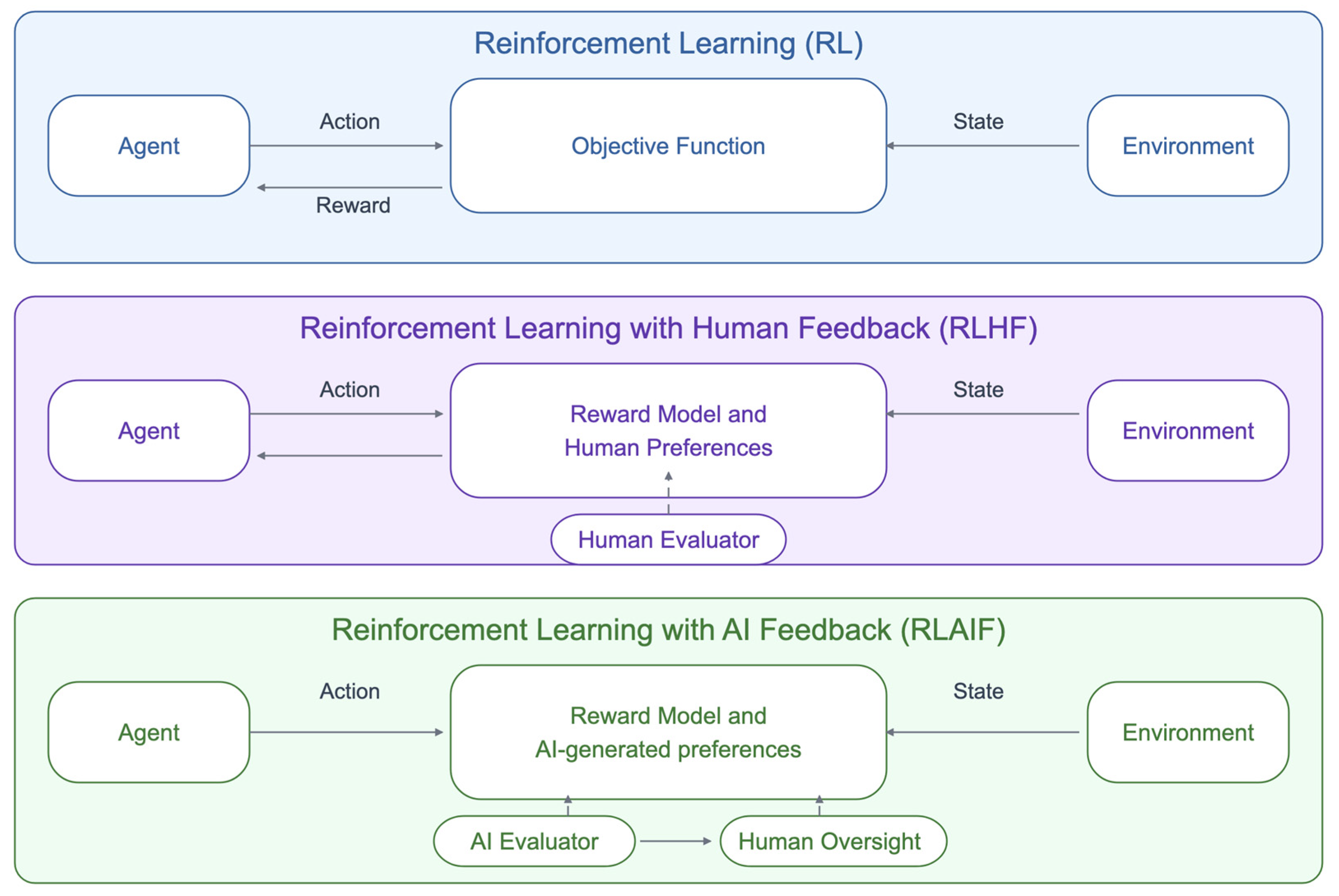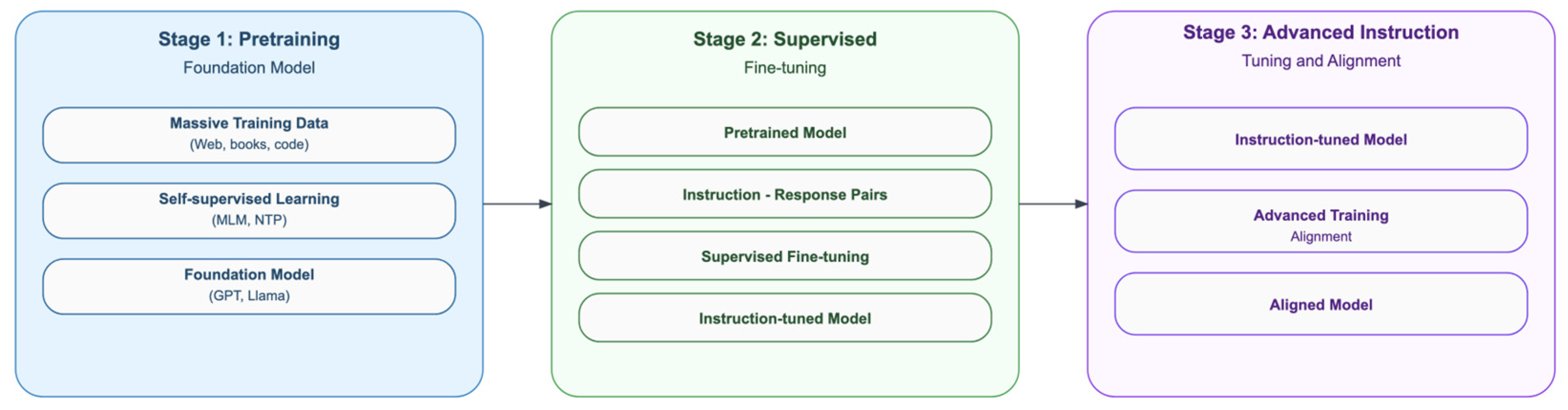 - Data-centric grounding, where Self-Instruct introduces a scalable, semi-automated method for generating diverse data without human annotation [159]. It begins with a small set of instructions and uses a pre-trained LLM to generate new tasks and corresponding input-output examples, which are then filtered and used to fine-tune the model, thus generating more aligned and grounded outputs.