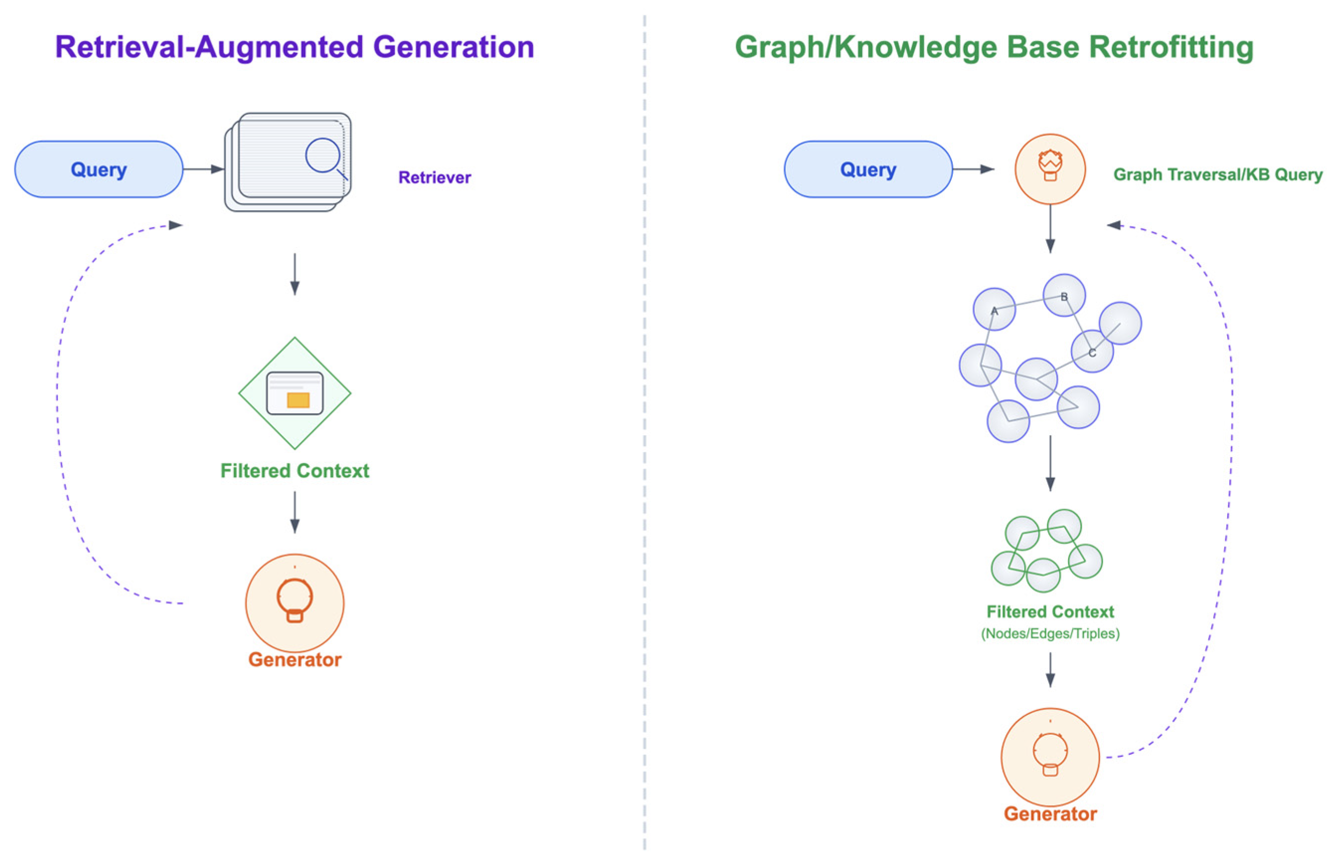 - Structured knowledge sources integrate and reason over formal data—e.g., knowledge graphs (KGs)—to refine and validate LLM outputs. Ref. [167] couples text with relational signals via GNN-based probabilistic inference to improve factual grounding, while [183] re-ranks conversational candidates using walks over KG subgraphs to enhance reasoning. Neural Path Hunter (NPH) [188] follows a generate-then-refine loop, detecting hallucinated entities in dialogue and replacing them via targeted KG queries. During FLEEK’s revision phase [207], a fact-revision module proposes corrections to dubious triples using verified KG/Web evidence. Complementing graph-centric methods, Ref. [82] blends deductive formal verification with the inductive strengths of LLMs, using logical tests to expose hallucinations.