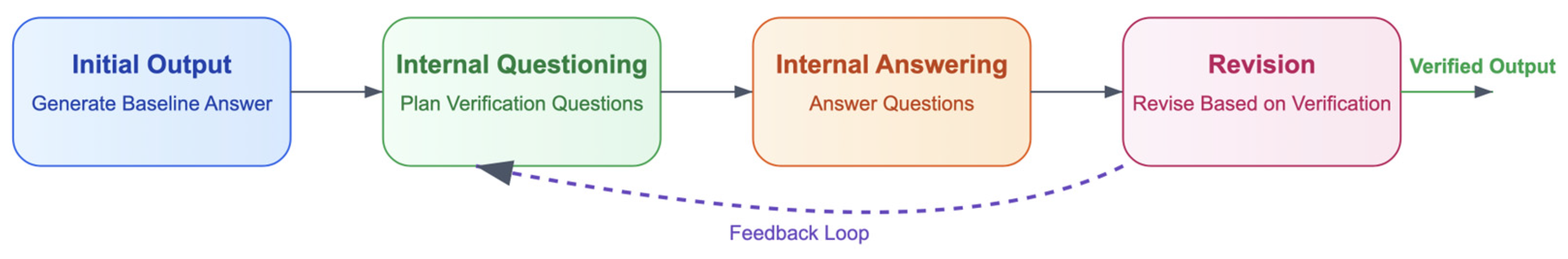 - Madaan, A.; Tandon, N.; Gupta, P.; Hallinan, S.; Gao, L.; Wiegreffe, S.; Alon, U.; Dziri, N.; Prabhumoye, S.; Yang, Y.; et al. Self-Refine: Iterative Refinement with Self-Feedback. March 2023. Available online: http://arxiv.org/abs/2303.17651 (accessed on 12 August 2025).