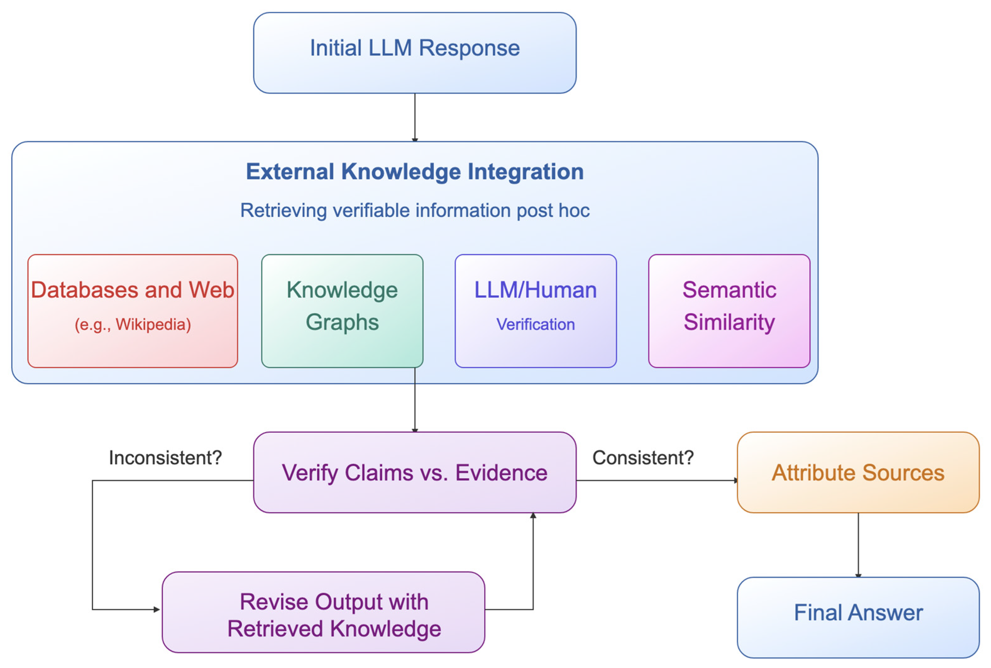 - Post-Generation Quality Control (Section 5.4): Encompasses essential post-generation checks applied to text outputs, aiming to identify or correct inaccuracies.