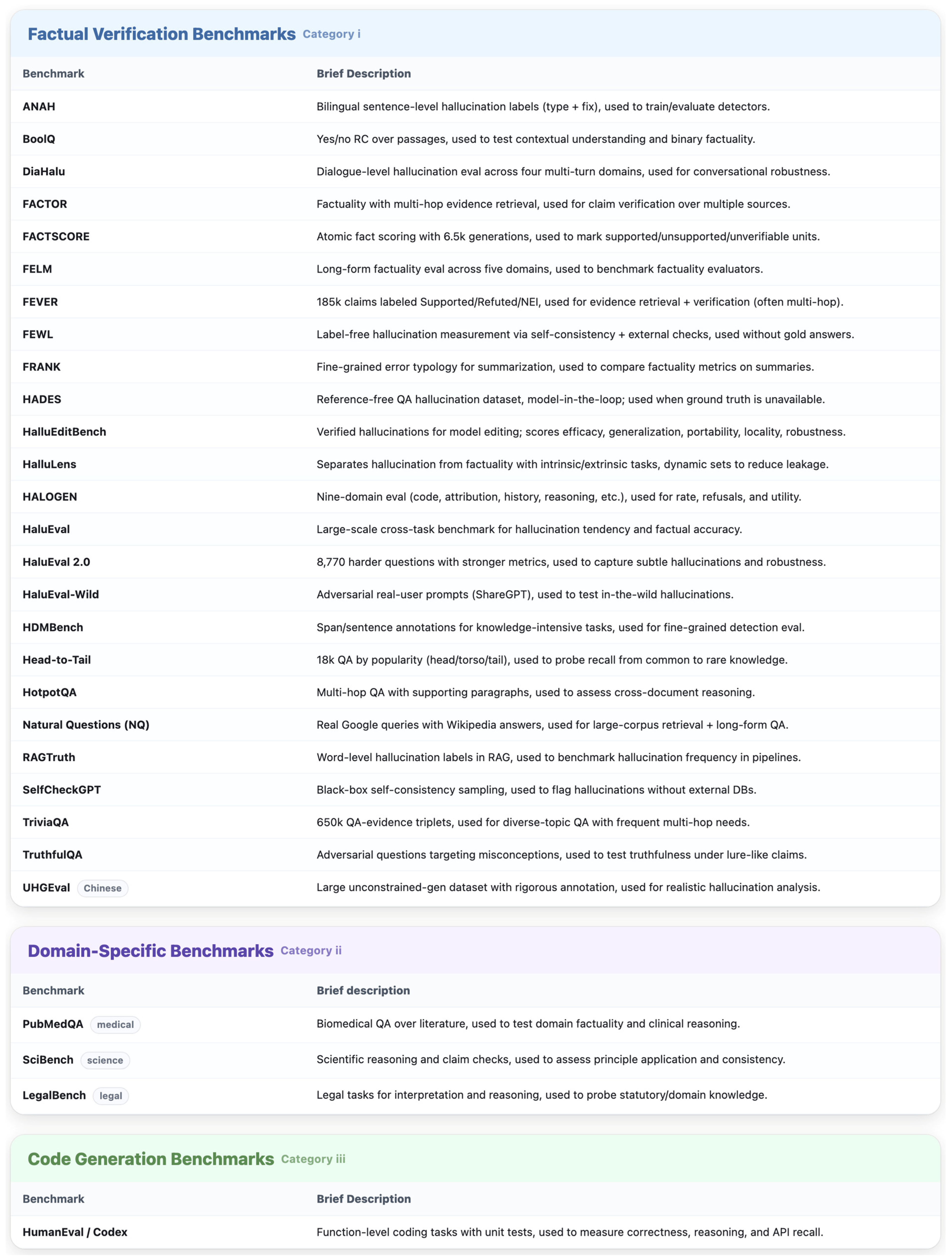 - Hallucination Detection Classifiers: [107] involves fine-tuning a LLaMA-2-7B model to classify hallucination-prone queries using labeled data while in [108] a sample selection strategy improves the efficiency of supervised fine-tuning by reducing annotation costs while preserving factuality through supervision.