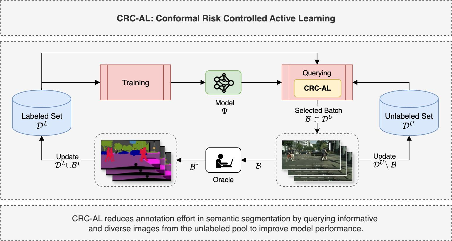 17]. Conformal risk control addresses this by providing guarantees on expected loss rather than coverage, bounding errors at the image level (e.g., false negative rates) and producing outer confidence sets that exploit spatial structure. Yet no prior work has applied this framework to active learning. This gap motivates CRC-AL, which integrates conformal risk control into active learning for semantic segmentation.