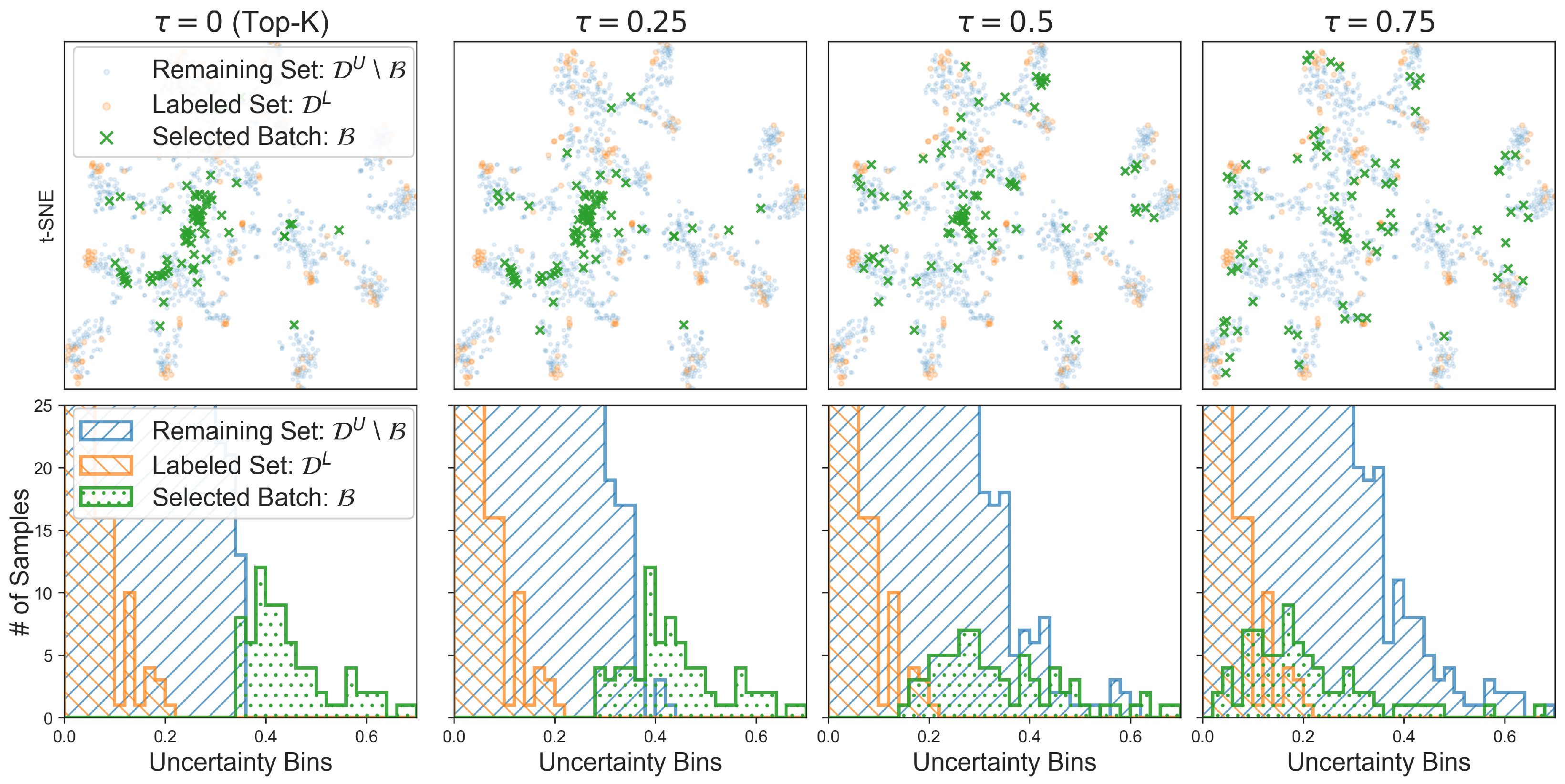 A second limitation of uncertainty-only methods is redundant sampling from similar high-uncertainty regions [