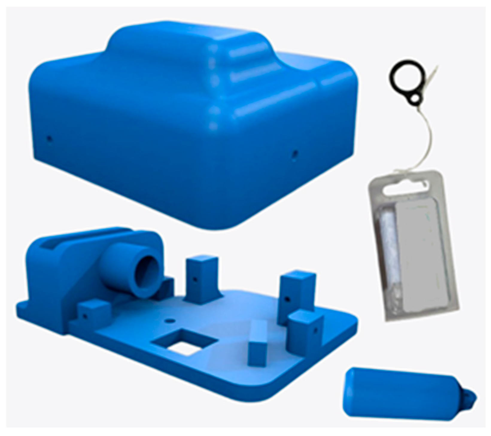 Figure 4 shows the modular design of the package’s fastening and release system. It illustrates the 3D-printed conceptual components and an example package.
