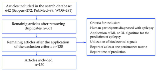 This document is structured as follows: Section 2 introduces the foundational concepts of epileptic seizure prediction, such as a general diagram of seizure prediction, bioelectrical signals commonly used, commercial devices, the dataset, and an overview of processing and classifiers employed in epileptic seizure prediction. Section 3 outlines the sequential methodology for conducting the proposed review consultation. Section 4 presents the analysis of current trends and models, and a conscious discussion of some works of ML and DL, leading to Section 5, which offers a discussion of the future tendencies of epileptic seizures according to the findings. Finally, Section 6 details the key results and findings of this review.