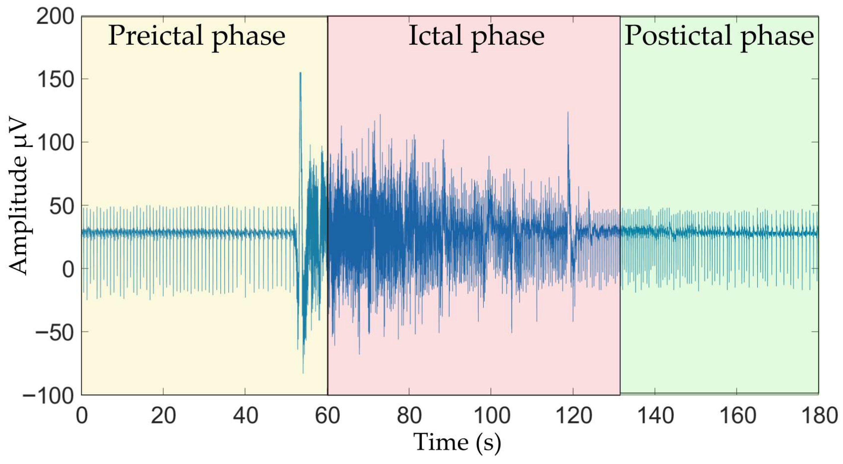 - Chen, R.; Parhi, K.K. Seizure Prediction Using Convolutional Neural Networks and Sequence Transformer Networks. In Proceedings of the 2021 43rd Annual International Conference of the IEEE Engineering in Medicine & Biology Society (EMBC), Virtual, 1–5 November 2021; IEEE: New York, NY, USA, 2021; pp. 6483–6486. [Google Scholar]