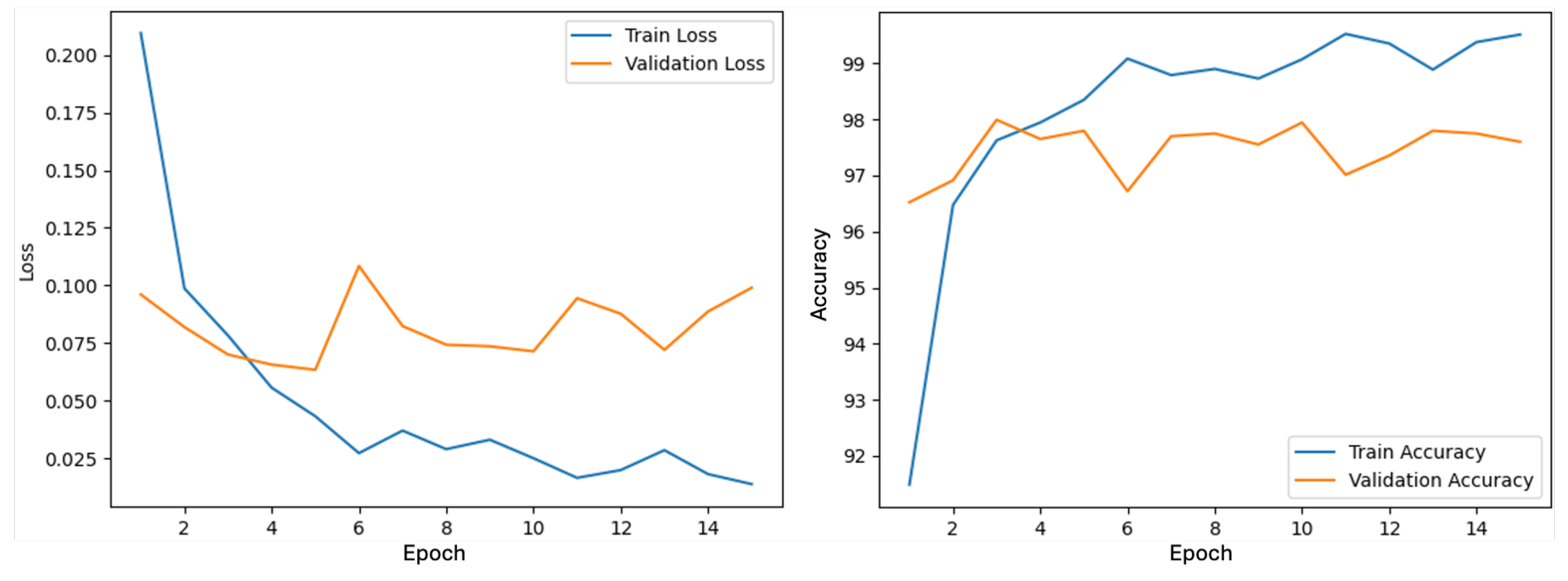 - Indications of overfitting were observed in Experiment 2 after epoch 6, likely due to the small validation set size. While test results confirmed high generalization, the limited validation data constrain interpretability.