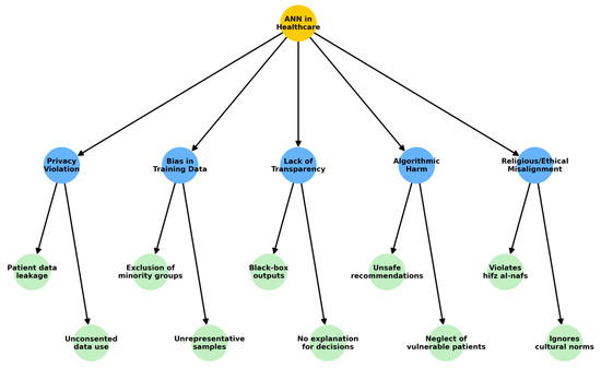 AI systems embedded in healthcare environments often follow secular ethical models rooted in Western liberalism, centring on autonomy, beneficence, and non-maleficence. In Muslim-majority contexts, however, moral reasoning is grounded in divine law (sharīʿah), which emphasises justice (ʿadl), preservation of life (ḥifẓ al-nafs), dignity (karāmah), and communal welfare (maṣlaḥah). This divergence can result in significant ethical dissonance. For example, an AI model designed to optimise project costs may recommend resource cuts that endanger vulnerable populations. From an Islamic perspective, this would violate the imperative to preserve life and ensure equitable care. As Elmahjub observes, Islamic ethics provide “pluralist ethical benchmarking” that stands apart from the dominant Western paradigm [25]. Similarly, Chamsi-Pasha and Albar note that while autonomy is recognised in both traditions, Western frameworks elevate it above other principles, whereas in Islamic ethics it is balanced within communal and religious duties [26]. Any AI system that lacks such grounding risks ethical irrelevance in Muslim societies. This demonstrates why ANN systems in Saudi healthcare must integrate maqāṣid principles such as ḥifẓ al-nafs, ʿadl, and karāmah as binding constraints rather than optional guidelines.
