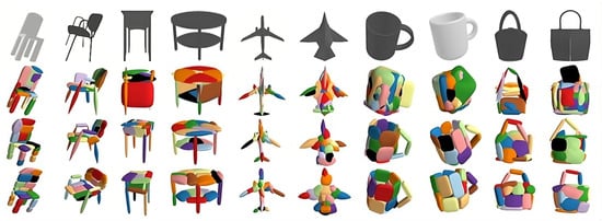 22]. Although the sample size may appear limited, this choice reflects the high computational cost associated with training and evaluation. Each object is represented using a fixed number of 20 superquadrics, ensuring consistency across all categories. This configuration offers a balanced trade-off between representational expressiveness and computational efficiency. In the experiments and tables, we refer to our previous model [