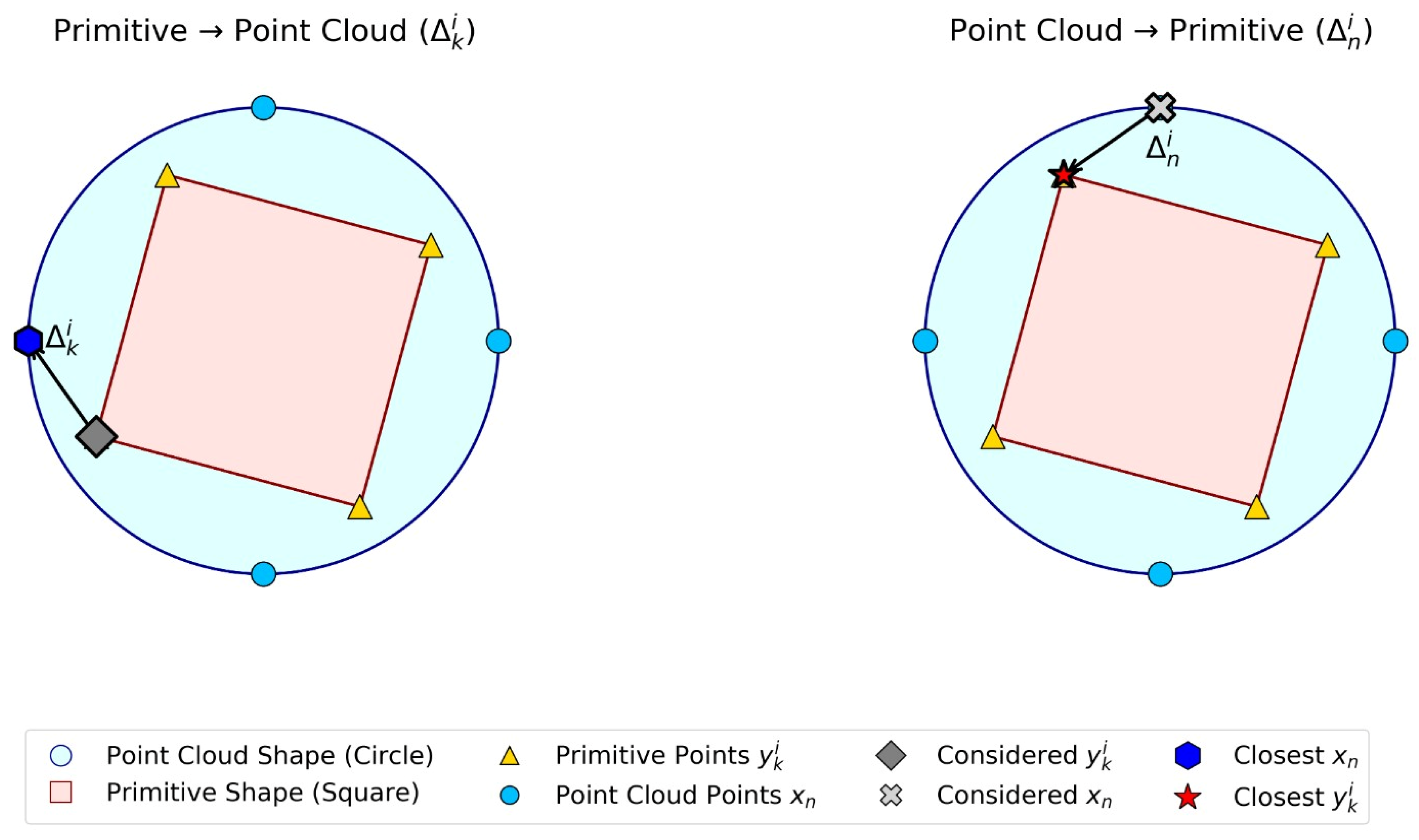 This metric evaluates how well each primitive aligns with the input point cloud while maintaining geometric consistency and meaningful segmentation. It measures the degree to which a primitive conforms to the shape and spatial distribution of its corresponding region in the input data.