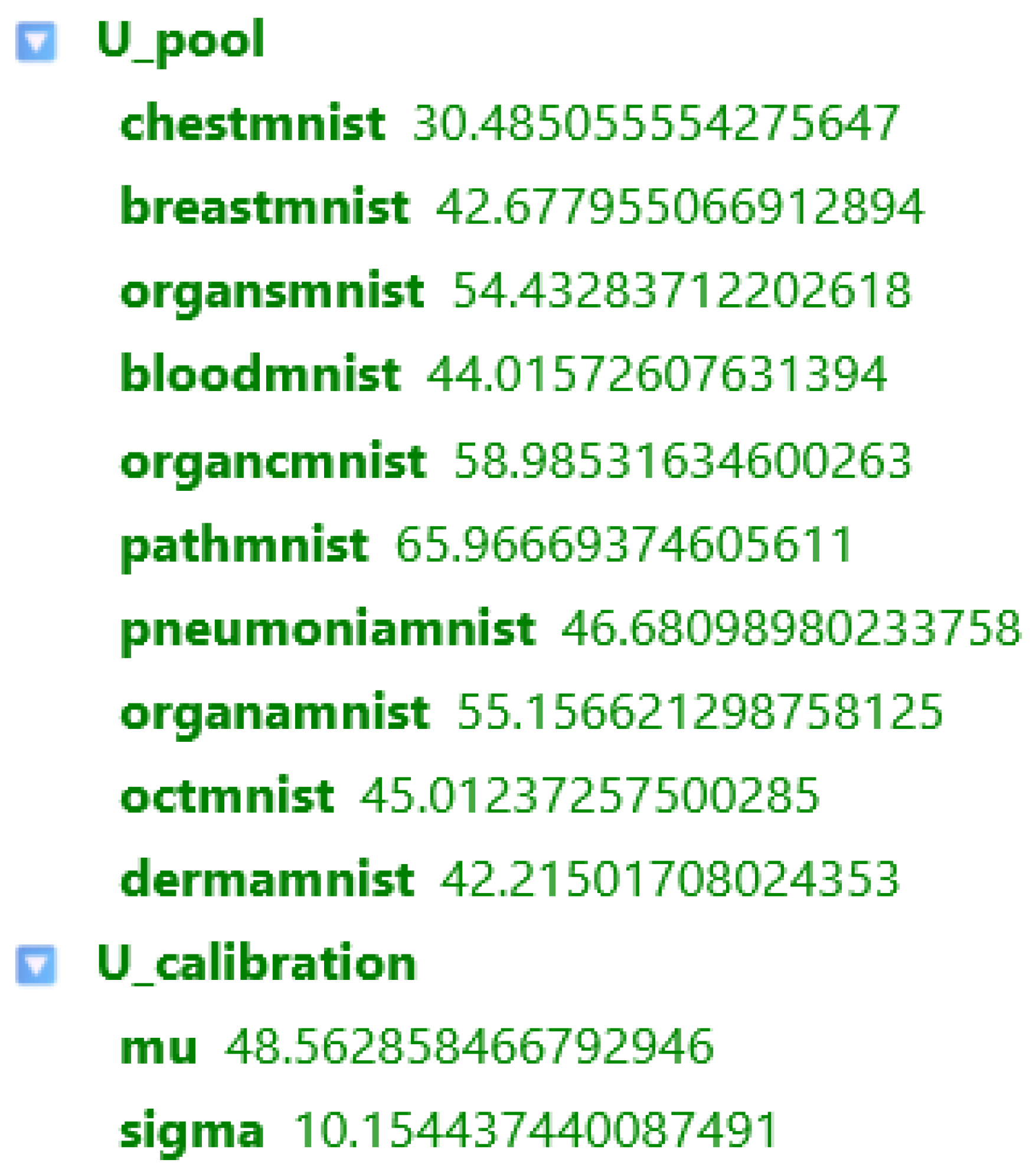 All code components in our proposed approach are modular and open to extension. Users can modify the backbone architecture for embedding extraction, change the weighting configuration, or add new metrics reflecting specific data domains (e.g., 3D volumes or multimodal fusion). Since the calibration parameters and are decoupled from the scoring logic, a single calibrated reference pool can serve as a common standard across research groups, enabling reproducible comparison of datasets and longitudinal quality monitoring.