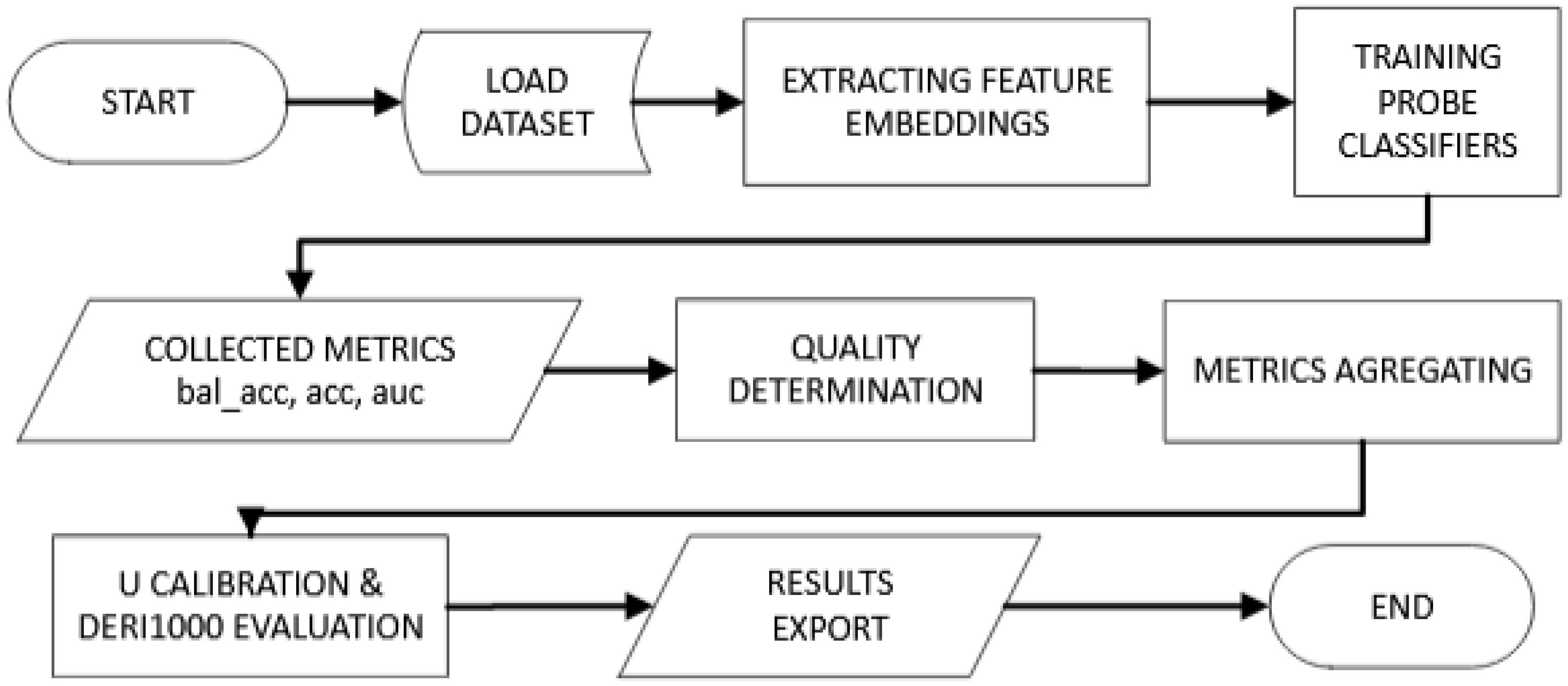 Our proposed system consists of four main phases. When designing our framework DERI1000, we focused on metric extraction, probe training, calibration and scoring, and finally interpretation and diagnostics. We will then discuss the individual phases in more detail.