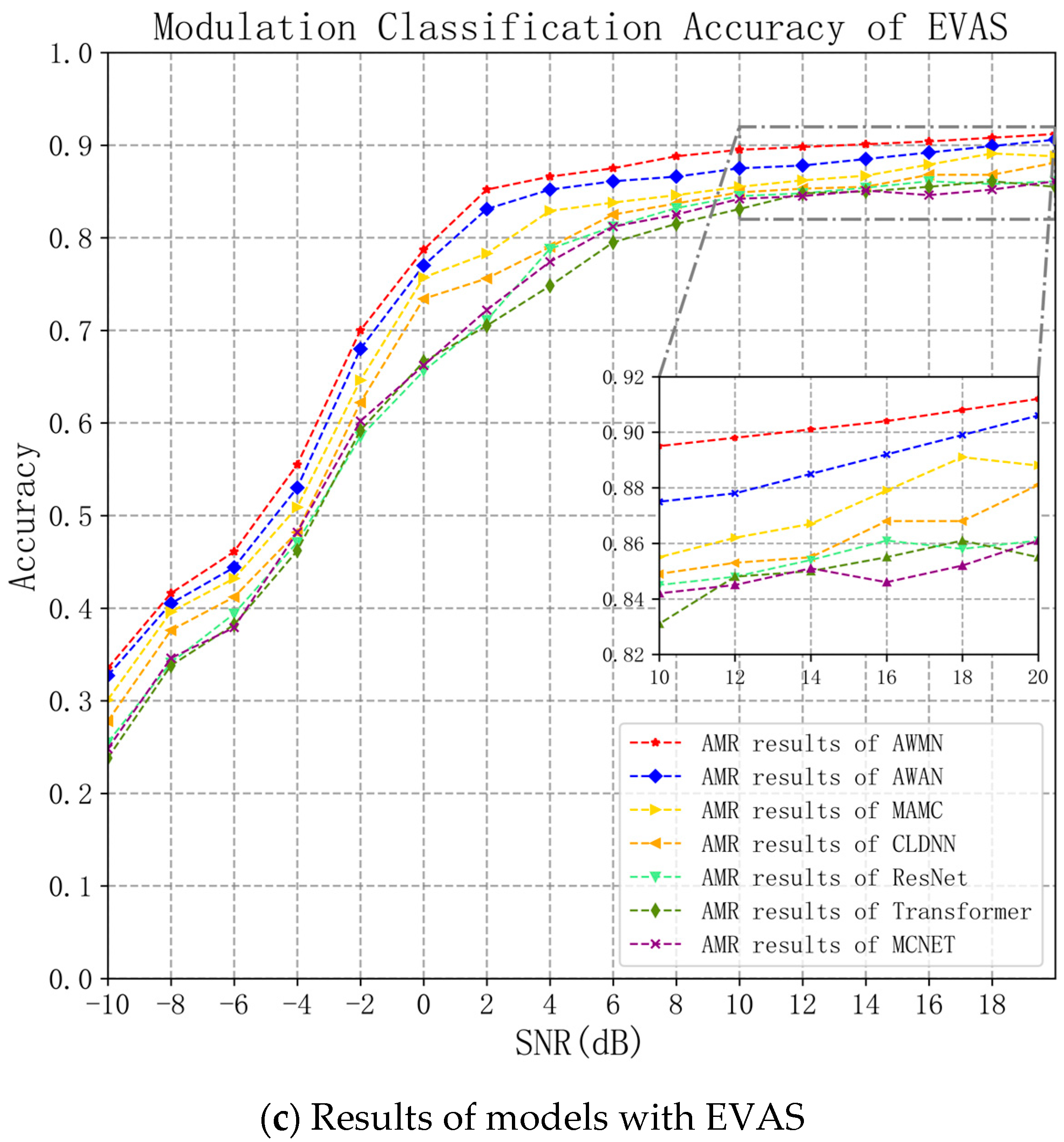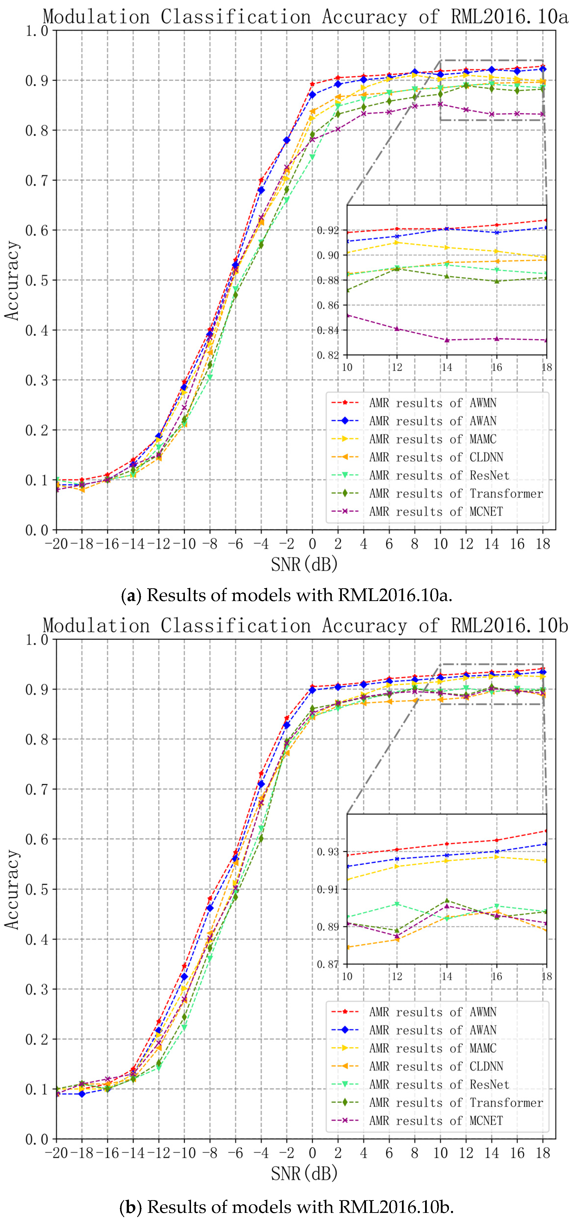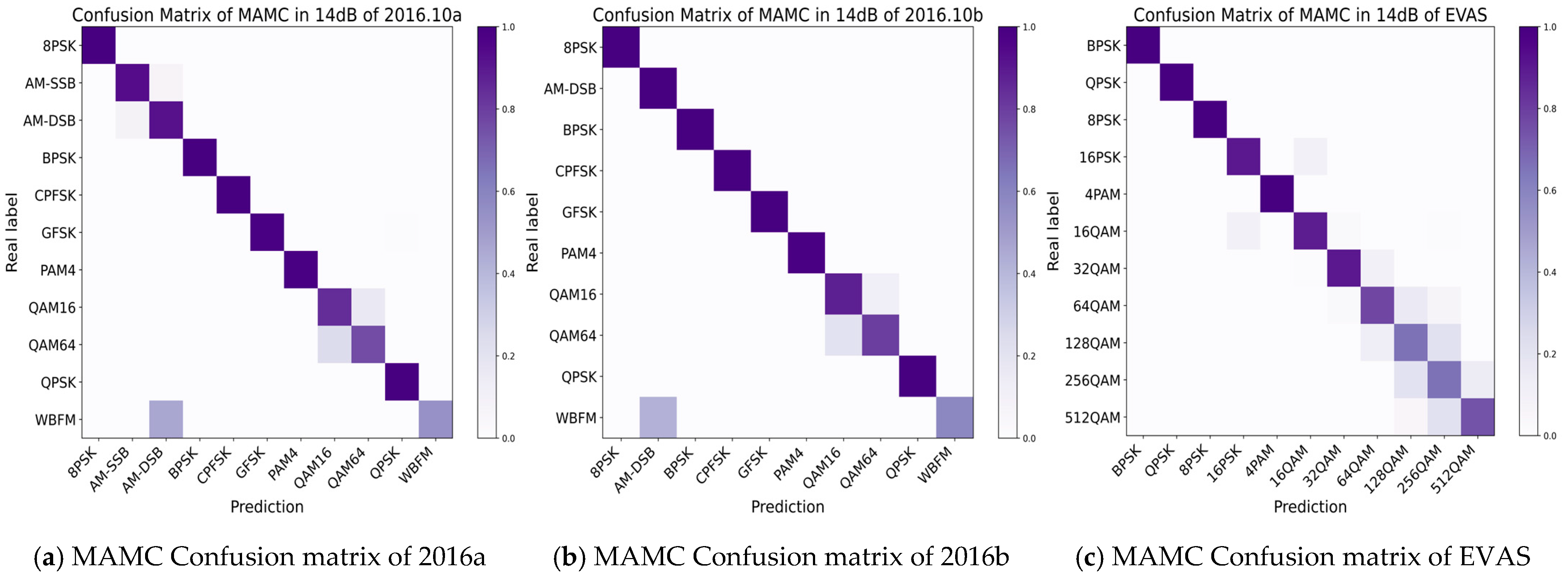 - Zhang, Y.; Zhou, Z.; Cao, Y.; Li, G.; Li, X. MAMC—Optimal on Accuracy and Efficiency for Automatic Modulation Classification with Extended Signal Length. IEEE Commun. Lett. 2024, 28, 2864–2868. [Google Scholar] [CrossRef]