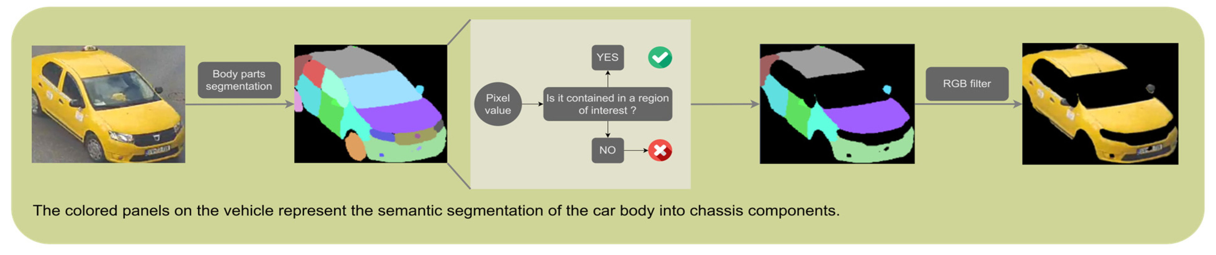 - Stavrothanasopoulos, K.; Gkountakos, K.; Ioannidis, K.; Tsikrika, T.; Vrochidis, S.; Kompatsiaris, I. Vehicle Color Identification Framework using Pixel-level Color Estimation from Segmentation Masks of Car Parts. In Proceedings of the 5th International Conference on Image Processing Applications and Systems (IPAS), Genova, Italy, 5–7 December 2022; IEEE: Piscataway, NJ, USA, 2023; pp. 1–7. [Google Scholar] [CrossRef]