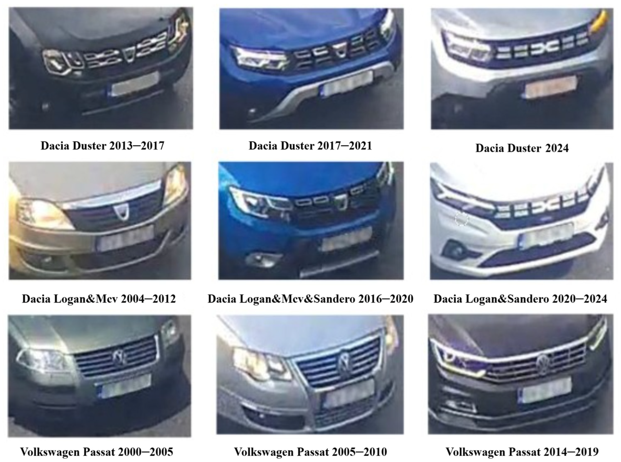 | 1 | Stanford Cars (Cars196): 2013 | Public (research mirrors) • 16,185 images • 196 classes (MMY—model, make, year) | Image-level make-model–year; devkit has bboxes. • VMMR usage: fine-grained classification. | + Clean, fine-grained labels; standard FGVC-fine-grained visual clasification benchmark. − Web images; limited surveillance viewpoints. | [2,3,12,17,24,25] |