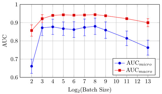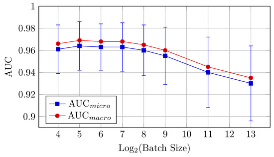 During the training and validation phases of the workflow, several standard performance metrics were employed to evaluate the models. These metrics included training and validation loss, which measure how well the model fits the training data and performs on unseen validation data. Loss is a quantitative indicator calculated using a Categorical Cross-Entropy loss function that reflects the error between the model’s predictions and the actual labels. Training and validation accuracy were also tracked to quantify the proportion of correctly classified samples during the training and validation stages, providing an intuitive measure of the model’s predictive success. Additionally, the area under the curve (AUC) for the receiver operating characteristic (ROC) curve was used [41]. The ROC-AUC metric evaluates the model’s ability to distinguish between classes by plotting the true positive rate (sensitivity) against the false positive rate (1-specificity) across different classification thresholds. The micro-average AUC aggregates metrics globally by considering all instances, while the macro-average AUC computes metrics for each class individually and then averages them, treating all classes equally regardless of sample size.