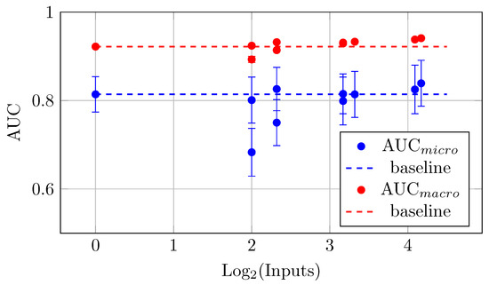 In summary, the difference in the rate of increase between AUC and accuracy as the number of inputs increases can be attributed to: