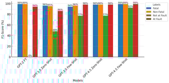 Following validation, this study explores several training methodologies—zero-shot learning, few-shot learning, and fine-tuning—using GPT-3.5 and GPT-4.5 to evaluate their effectiveness in applying expert-validated labels for comprehensive crash report analysis. Zero-shot learning allows for the immediate application of labels without the need for prior training [23,24,25], while few-shot learning adjusts models using minimal examples, and fine-tuning provides more extensive training to optimize label extraction and analysis [17,19].