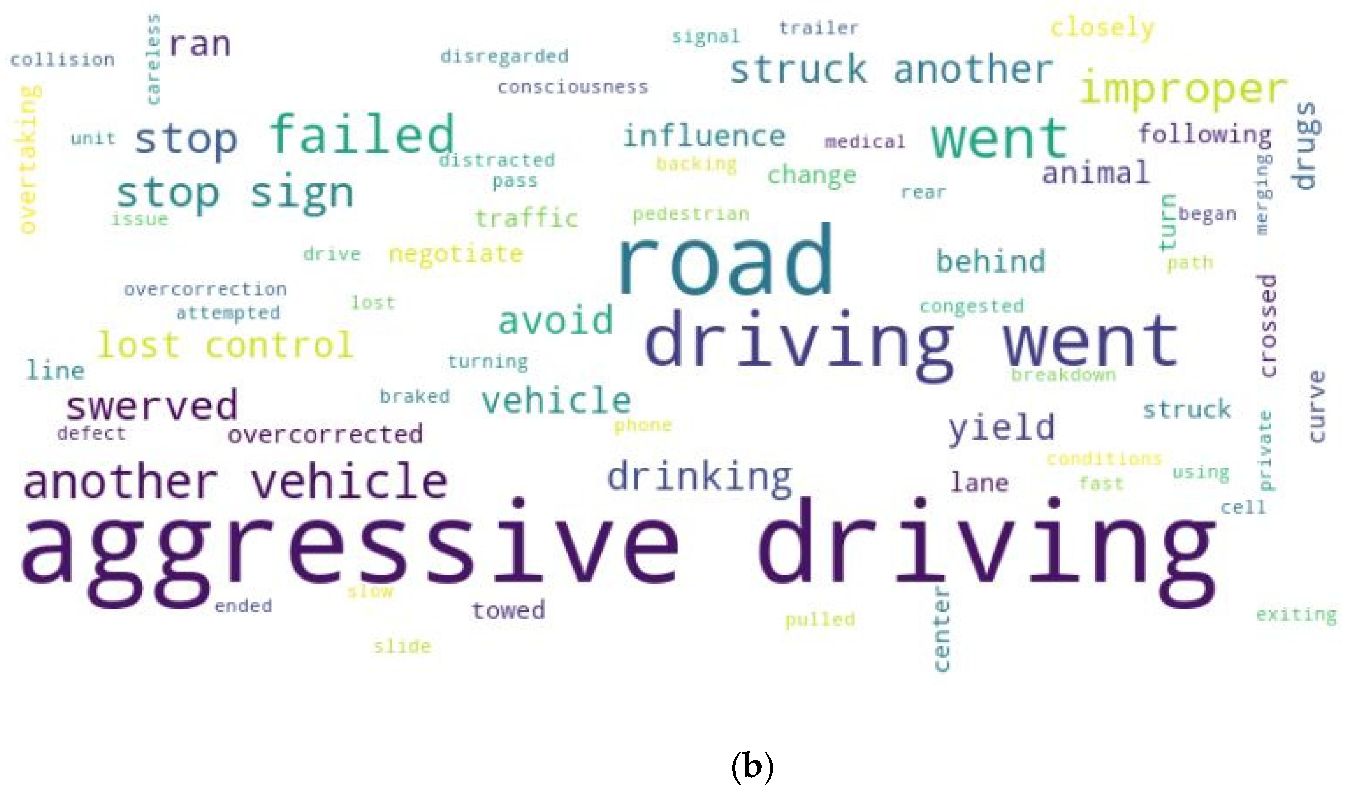 - Zhang, X.; Green, E.; Chen, M.; Souleyrette, R.R. Identifying Secondary Crashes Using Text Mining Techniques. J. Transp. Saf. Secur. 2020, 12, 1338–1358. [Google Scholar]