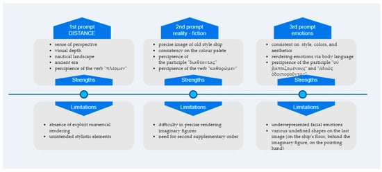 Considering the previous research objectives overall, the study presents insightful observations regarding DALL·E’s capability in processing Ancient Greek prompts. The findings reveal both the strengths and limitations of AI-generated imagery in capturing spatial concepts, blending real and fictional elements, and conveying emotions.