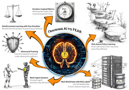 Unlike humans, the AI does not see a patient’s suffering or feel adrenaline; its “fear” is activated by detecting alarmingly high-risk metrics in incoming data. Fear, applied to AI as a metaphor, is a critical safety feature—much more than simple Bayesian risk assessment. It offers a holistic, evolution-inspired approach to caution. While it demands an interdisciplinary effort from psychology, neuroscience, engineering, and ethics, its benefit is clear: an AI that acts with built-in “common sense” about danger. This framework does not view fear as an emotion but as a real-time harm-avoidance process that carries out the following: