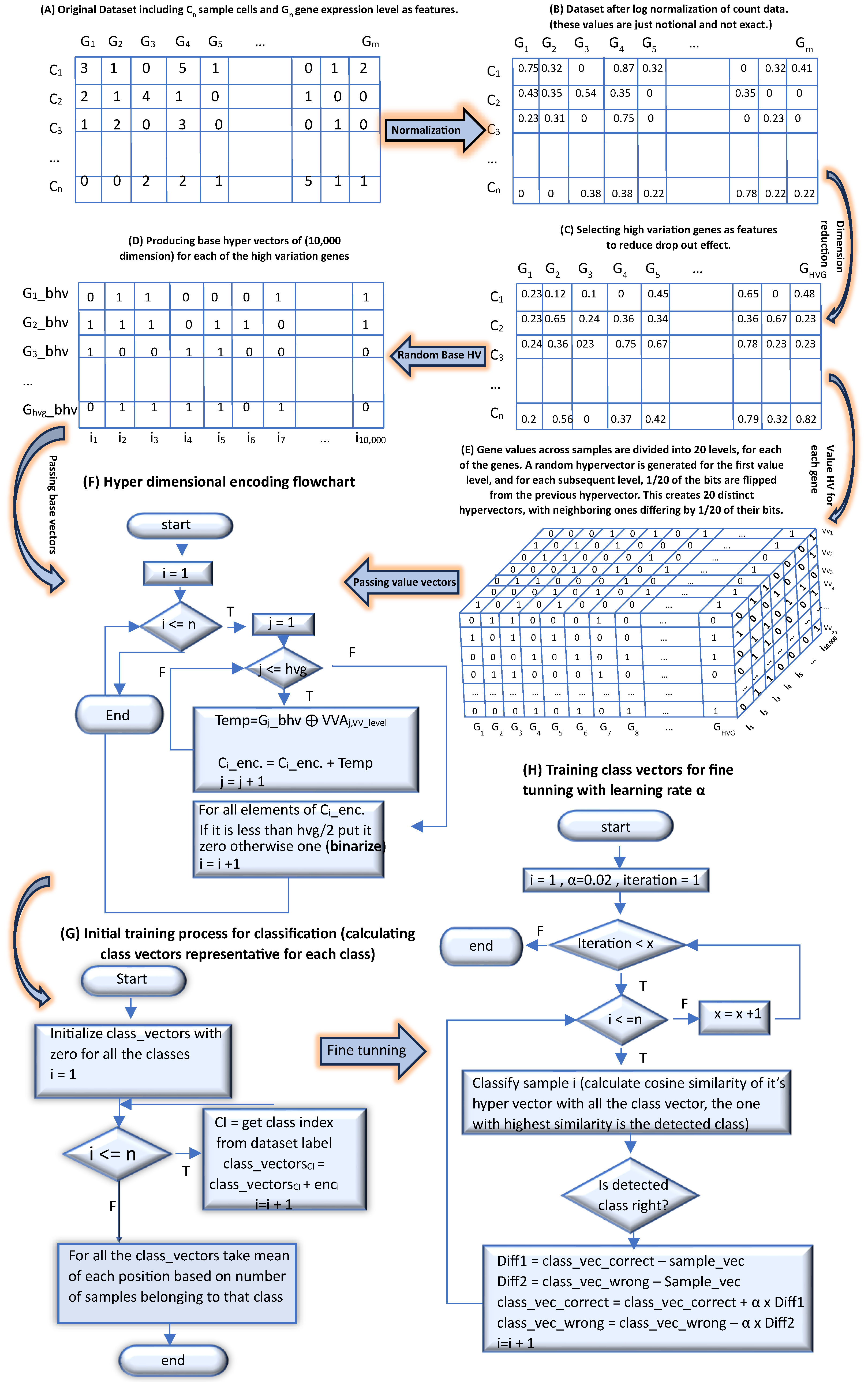 - Mohammadi, H.; Baranpouyan, M.; Thirunarayan, K.; Chen, L. HyperCell: Advancing Cell Type Classification with Hyperdimensional Computing. In Proceedings of the 2024 46th Annual International Conference of the IEEE Engineering in Medicine and Biology Society (EMBC), Orlando, FL, USA, 15–19 July 2024; pp. 1–4. [Google Scholar]