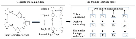 KG-BERT is a specific fine-tuning paradigm designed for handling KG, utilizing the BERT-base model as its foundational framework. It models the knowledge graph by incorporating entity descriptions and entity relationships as inputs. Building upon KG-BERT, Jason Youn et al. combined it with the stRA model and devised entityrelation-type (ER-type) embedding. These embeddings undergo further pretraining, as depicted in the diagram, to facilitate the learning of intrinsic relationships within the knowledge graph using preexisting pre-trained models.