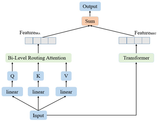 Recent studies have shown that Transformer-based architectures, particularly self-attention mechanisms, outperform convolutional neural networks (CNNs) in a wide range of natural language processing (NLP) tasks. Therefore, this work adopts BERT/Transformer as the fundamental feature-extraction module rather than CNNs [42,43]. This architecture enhances semantic modeling capabilities while avoiding the noise introduced by convolutional operations, thereby effectively addressing the limited adaptability of the original BRA module in NLP tasks.