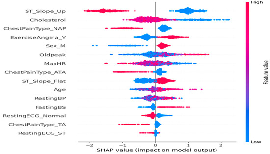 The numerical features to which standardization was applied include the following: Age, RestingBP, Cholesterol, FastingBS, MaxHR, and Oldpeak. By ensuring that all preprocessing steps preceded the SHAP-based feature importance computation, we maintained methodological consistency and robustness in both the modeling and interpretability phases.
