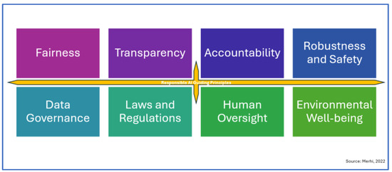- Fjeld, J.; Achten, N.; Hilligoss, H.; Nagy, A.C.; Srikumar, M. Principled Artificial Intelligence: Mapping Consensus in Ethical and Rights-Based Approaches to Principles for AI. Berkman Klein Center Research Publication No. 2020-1. 2020. Available online: https://ssrn.com/abstract=3518482 (accessed on 7 July 2024).