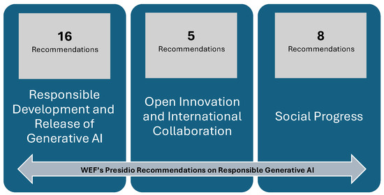 - WEF. The Presidio Recommendations on Responsible Generative AI. 2023. Available online: www.weforum.org/publications/the-presidio-recommendations-on-responsible-generative-ai/ (accessed on 14 March 2025).