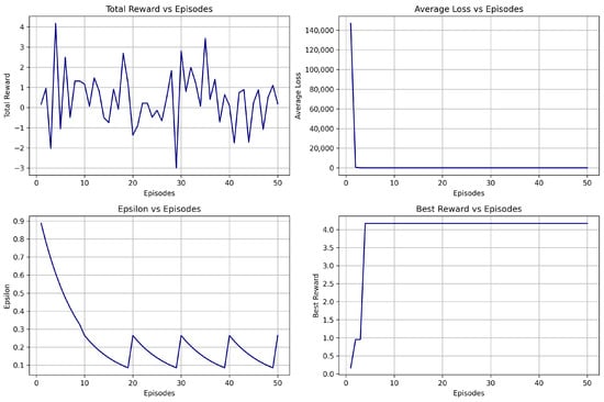 Fu and Huang [] integrated macroeconomic signals such as oil and gold prices into a DDQN-based trading system. Their study underscores the potential of incorporating external market indicators in equity trading strategies, especially during commodity-driven market conditions.