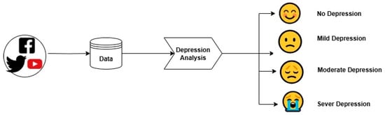 Depression is a long-term and recurring mental health disorder that requires continuous monitoring and treatment [,,,]. According to the World Health Organization, over 300 million people worldwide suffer from depression [], and it is becoming increasingly prevalent over time. It differs from regular mood swings and temporary emotional reactions that individuals encounter in daily life []. Psychiatrists typically use structured diagnostic interviews and specialized questionnaires to assess a patient’s symptoms and make clinical decisions []. One common tool, the Patient Health Questionnaire-9 (PHQ-9), asks individuals to rate how often they experience symptoms like hopelessness or a lack of interest in activities over the past two weeks, with the total score indicating the severity of depression []. However, these traditional methods are often time-consuming for healthcare professionals and place a heavy burden on mental health systems. Additionally, they rely on patients actively seeking help, which many may never do []. Given the growing role of health information technology in improving healthcare efficiency [], developing automated methods for detecting depression is both necessary and beneficial.